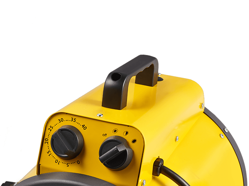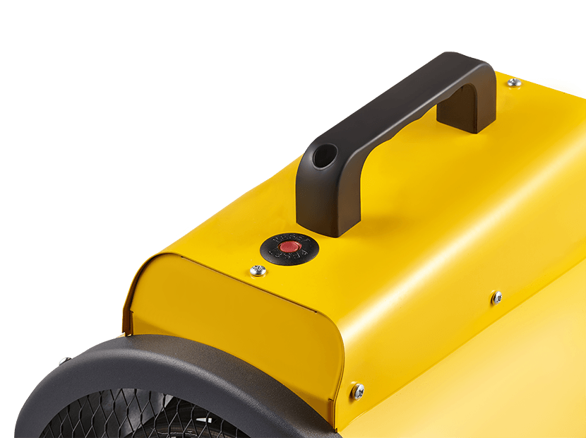 Помимо стандартного размещения на полу, тепловую пушку Prorab 2 можно подвесить на стену или колонну, выбрав необходимый угол обдува с помощью барашковых винтов, которые надежно фиксируют пушку. Это поможет сэкономить рабочее пространство и повысить безопасность. При установке прибора на стене уменьшается разница температуры по высоте, тем самым сокращается расход на электроэнергию. Функция ручного перезапуска препятствует автоматическому запуску пушки после срабатывания защитного термостата. Пушка отключается и не включается повторно до устранения причины перегрева. Для снятия блокировки и дальнейшей эксплуатации пушки необходимо нажать на кнопку сверху корпуса.