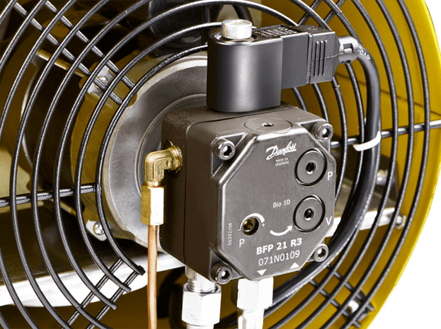 Топливо из топливного бака подаётся на форсунку высокопроизводительным топливным насосом Danfoss.