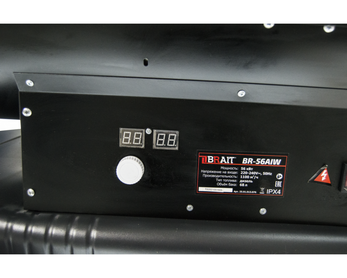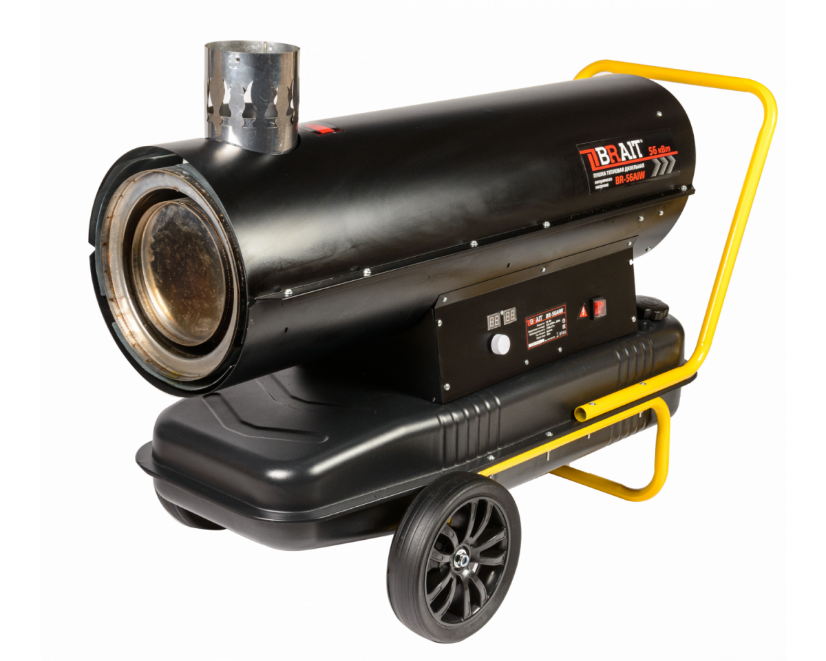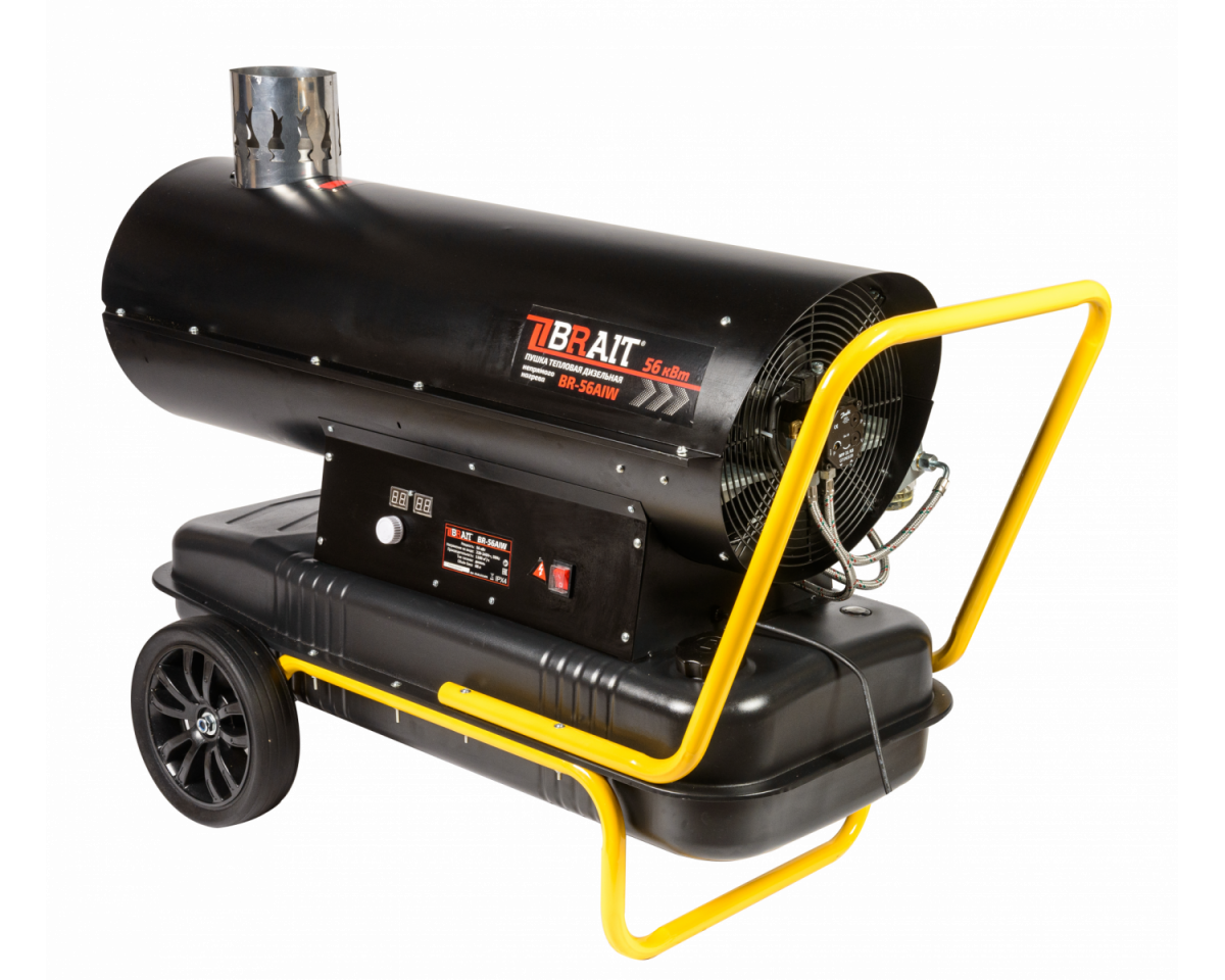 Тепловая пушка дизельная Brait BR-56AIW, нагрев: непрямой, тепловая мощность: 56 кВт, производительность: 1100 м3/ч, защита от перегрева, режим вентиляции