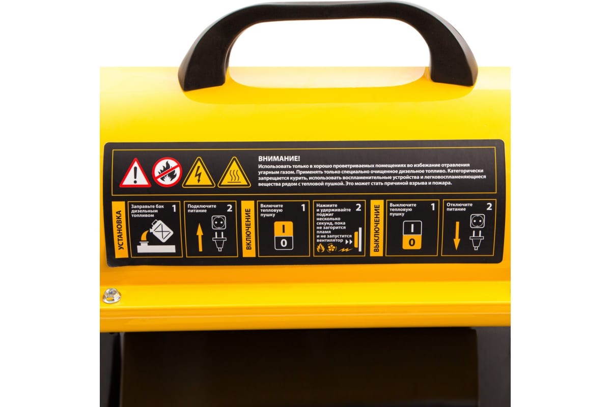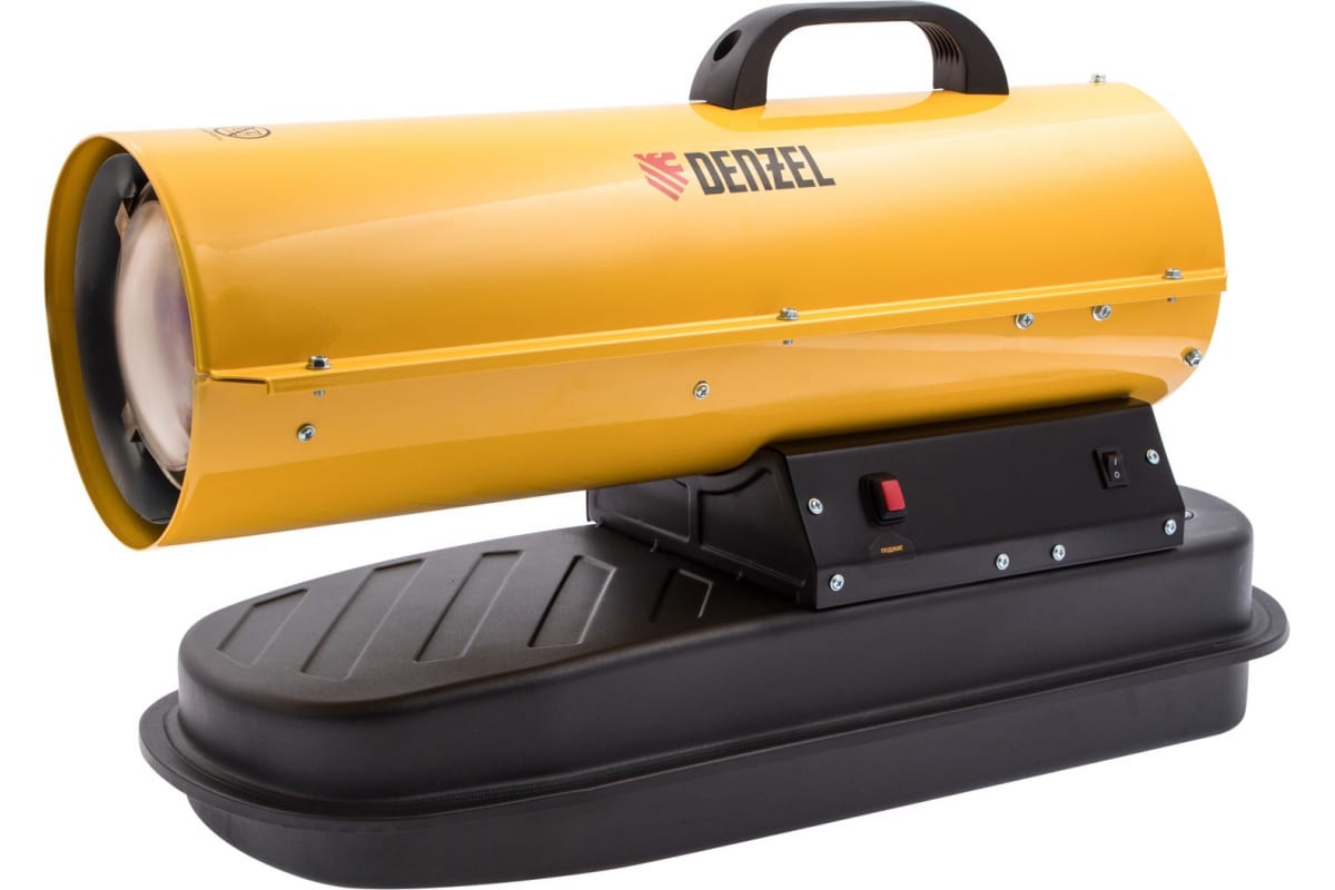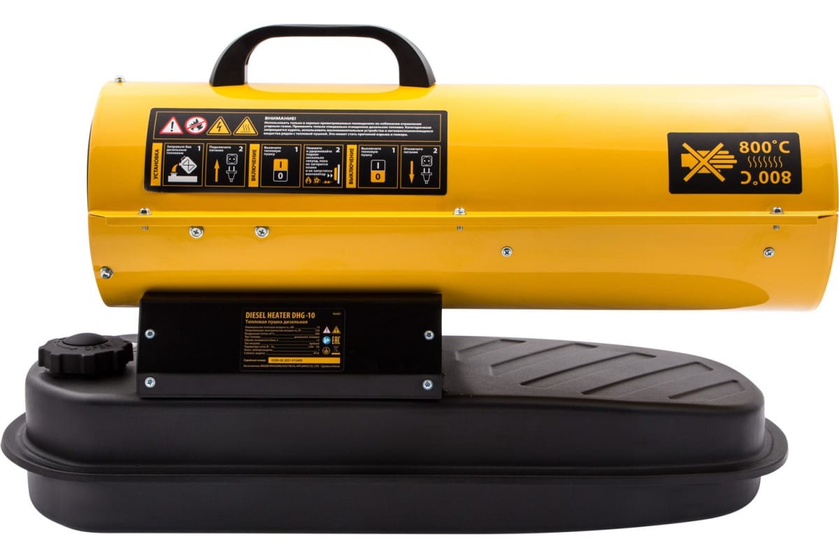 Дизельная тепловая пушка Denzel DHG-10, 10 кВт, 300 м3/ч, прямой нагрев имеет высокую тепловую мощность и применяется для обогрева нежилых помещений: цехов, хранилищ и ангаров. Также ее используют на строительных площадках для просушивания стен, разморозки траншей, подогрева бетона. Во время арктических экспедиций дизельные тепловые пушки также часто выступают генератором тепла.