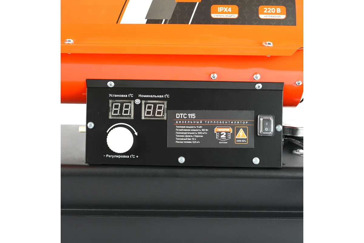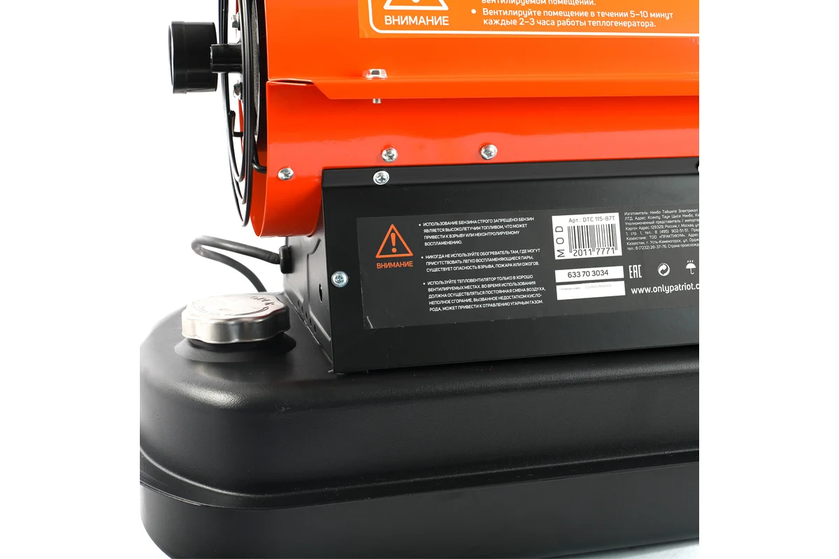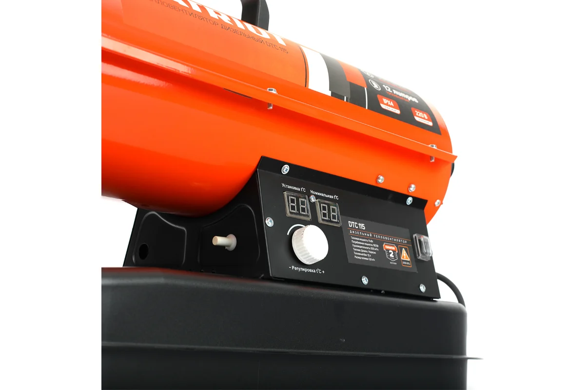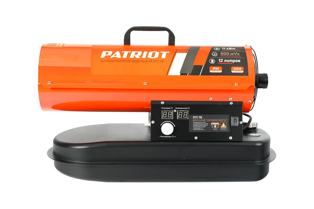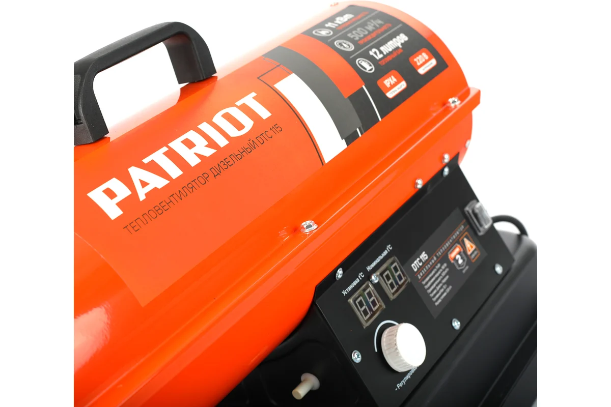 Тепловая пушка дизельная Patriot DTC-115, мощность 12 кВт, прямой нагрев, производительность 320 м3/час, расход топлива 1.00 л/час, защита от перегрева