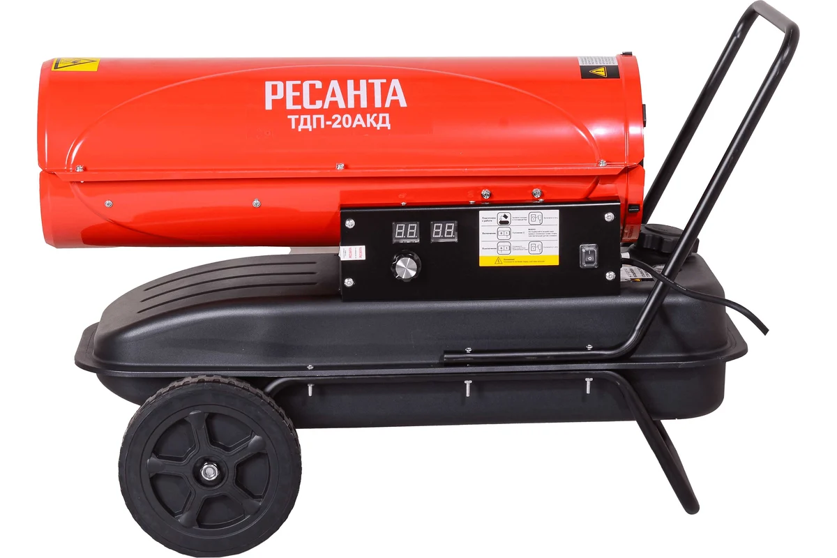Дизельная тепловая пушка Ресанта ТДП-20АКД – это отопительный агрегат, основное предназначение которого заключается в быстром и экономичном обогреве таких нежилых помещений, как производственные цеха, сельскохозяйственные хранилища, строительные площадки и прочее.