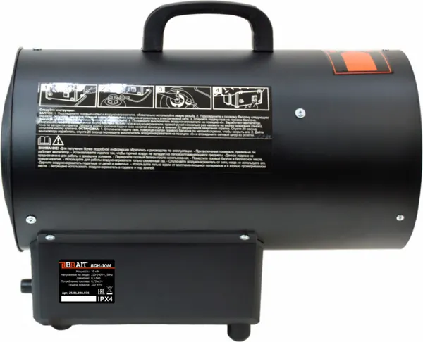 Тепловая пушка газовая Brait BGH-10M, нагрев: прямой, тепловая мощность: 10 кВт, производительность: 320 м3/ч, защита от перегрева, пьезорозжиг