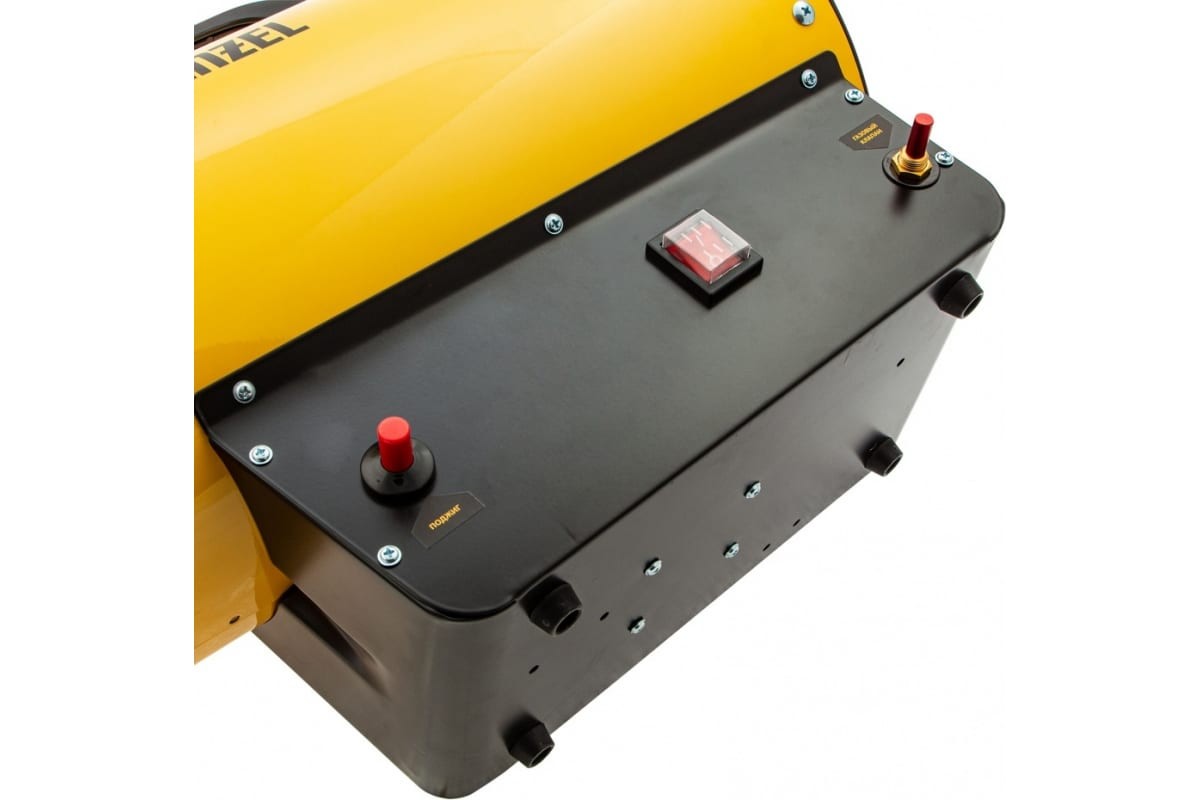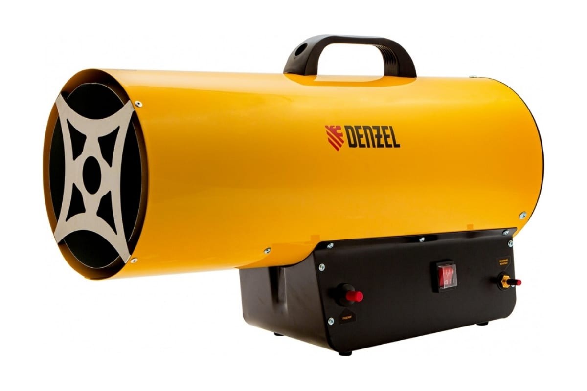 Газовая тепловая пушка Denzel GHG-50 имеет тепловую мощность 50 кВт и применяется для работы в мастерских, гаражах, строящихся объектах, а также нашли особую популярность при установке натяжных потолков. Тепловая пушка отличается высокой производительностью 1400 м3/ч при экономичном расходе топлива 3,3 кг/ч и компактных габаритах.