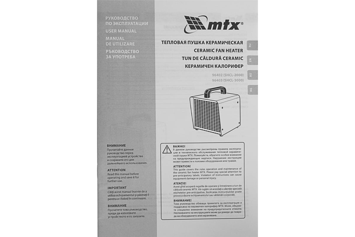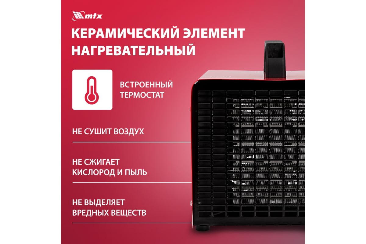 Тепловая пушка MTX SHCL-3000, 230 В, 480 м3, мощность 2 кВт, производительность 480 м3/час, площадь обогрева 40 м2, защита от перегрева, 3 режима работы