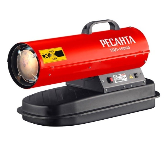 Тепловая дизельная пушка РЕСАНТА ТДП-10000 предназначена для обогрева воздуха объемом до 100 м². Устройство оснащено системой защиты от угасания пламени и возгорания для предотвращения нештатных ситуаций.