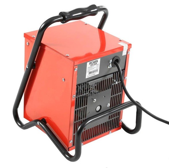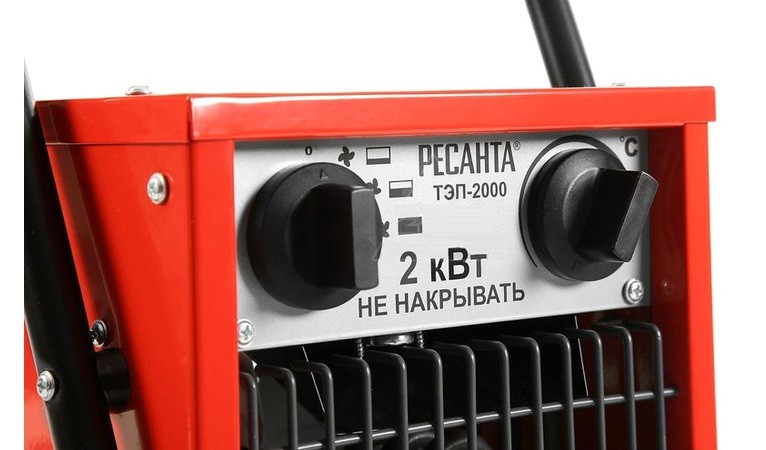 Тепловая пушка ТЭП–2000 несмотря на небольшой размер обладает мощностью в 2000 Ватт, способен производить до 200 м³/ч. Кроме этого прибор справляется и с функциями вентилятора (предусмотрен режим обдува холодным воздухом).