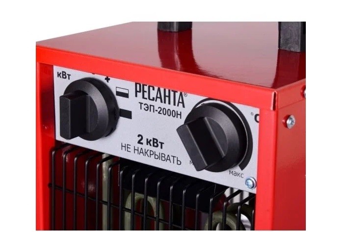 Тепловая пушка Ресанта ТЭП-2000Н (67/1/17), электрическая, управление механическое, тепловая мощность 2 кВт, площадь обогрева 20 м2