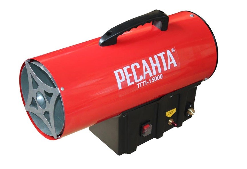Газовая тепловая пушка ТГП-15000 предназначена для обогрева помещений площадью до 150 кв.м. Устройство работает на сжиженном газе. Зажигание осуществляется за счет пьезоэлектрического элемента. Металлическая решетка на сопле предотвращает попадание внутрь пушки посторонних предметов. Для безопасности эксплуатации предусмотрена защита от перегрева. Температура воздушного потока составляет 420 градусов.