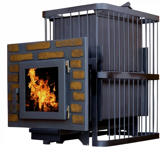 Печь банная ComfortProm Сталь 8 мм ЗАКРЫТАЯ КАМЕНКА, для парной до 20 кубов, вес 100, длина дров до 40 см, на 180 кг камней, дверь со стеклом декор