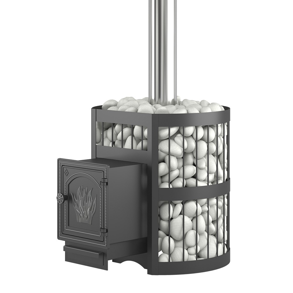 Банная печь ЭТНА 18 (ДТ-4) Стандарт выполнена из высокопрочного сплава чугуна, обладающего стойкостью к высоким температурам и не выделяющим инфракрасного теплового излучения. К тому же, свойства чугуна позволяют сохранять целостность печи на протяжении многих лет, даже при постоянном контакте с водой. Печь укомплектована чугунной не герметичной дверцей. Конвекционно-вентилируемый кожух-сетка изготовлен из металлического прутка покрашенной черной термостойкой краской.
