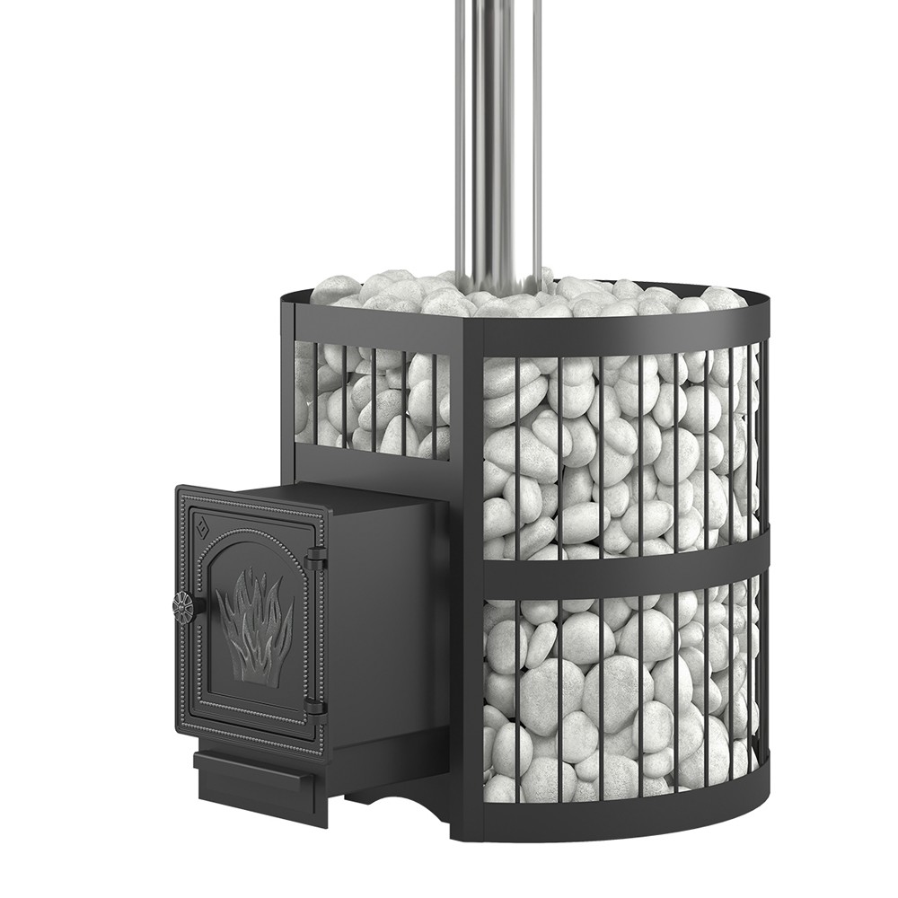 Банная печь ЭТНА 24 (ДТ-4С) Стандарт выполнена из высокопрочного сплава чугуна, обладающего стойкостью к высоким температурам и не выделяющим инфракрасного теплового излучения. К тому же, свойства чугуна позволяют сохранять целостность печи на протяжении многих лет, даже при постоянном контакте с водой. Печь укомплектована чугунной не герметичной дверцей. Конвекционно-вентилируемый кожух-сетка изготовлен из металлического прутка покрашенной черной термостойкой краской.