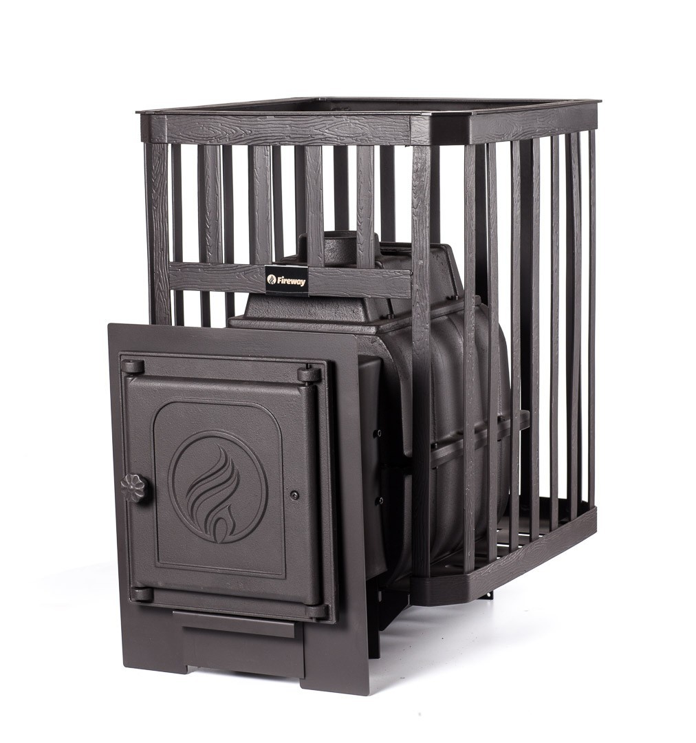 Банная печь FireWay ПароВар 18 Ковка (312), выносная топка, чугун, открытая каменка, для парной 10-18 м3, масса камней 120 кг, вес печи 85 кг