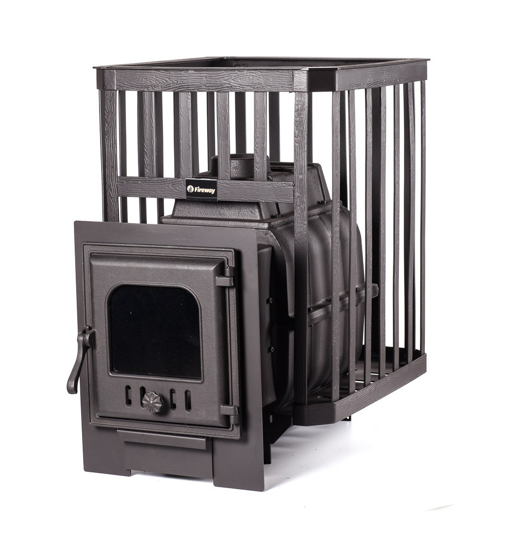 Банная печь FireWay ПароВар 18 Ковка (402), выносная топка, чугун, открытая каменка, для парной 10-18 м3, масса камней 120 кг, вес печи 78 кг