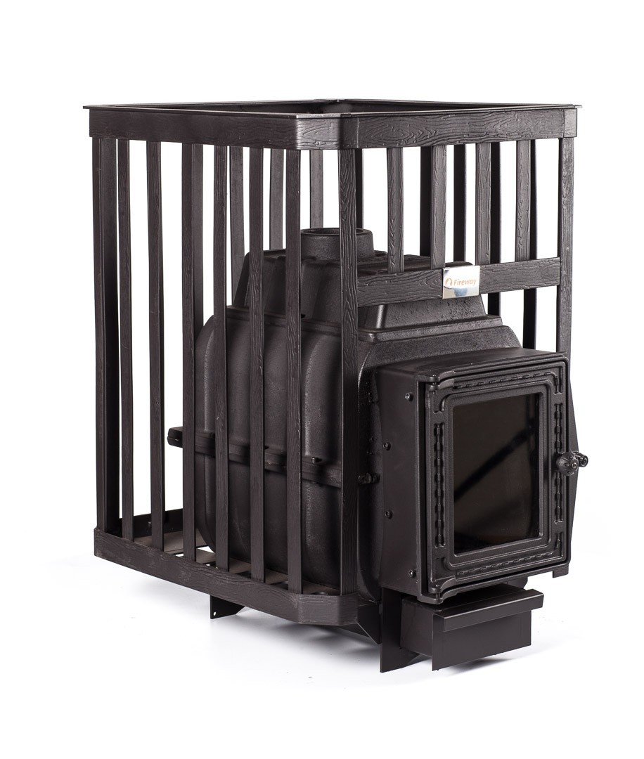 Банная печь FireWay ПароВар 18 Ковка (К201) без выноса топки, чугун, открытая каменка, для парной 10-18 м3, масса камней 120 кг, вес печи 85 кг