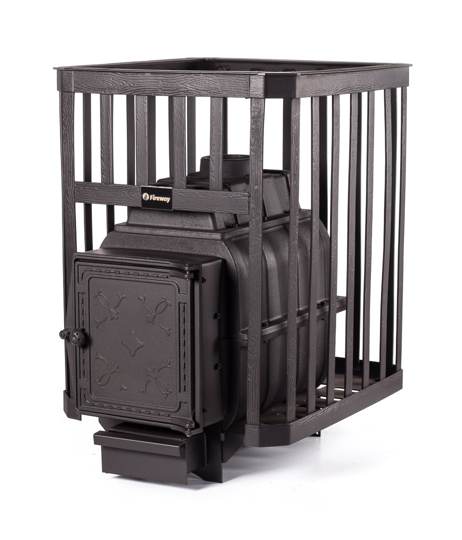 Банная печь FireWay ПароВар 18 Ковка (К211) без выноса топки, чугун, открытая каменка, для парной 10-18 м3, масса камней 120 кг, вес печи 85 кг