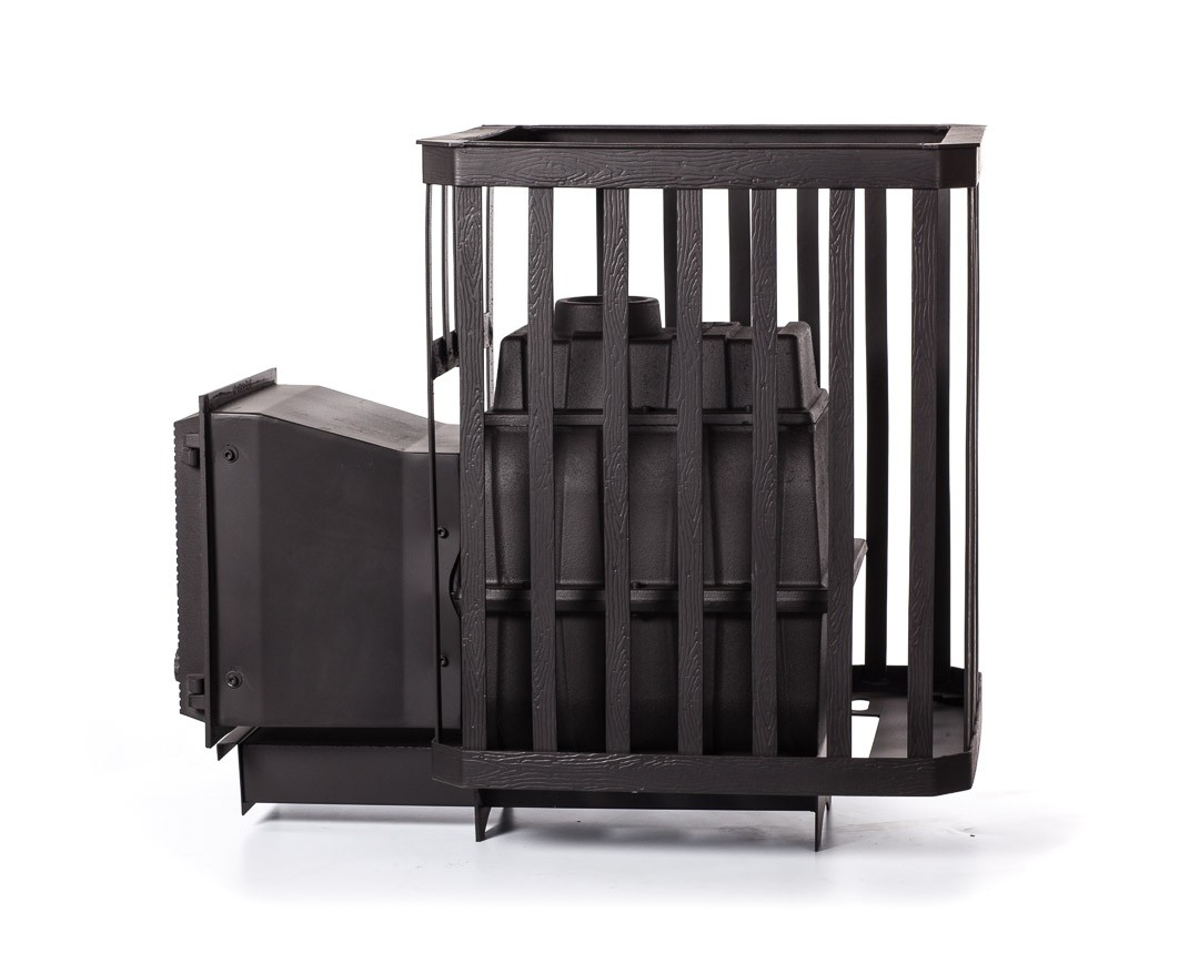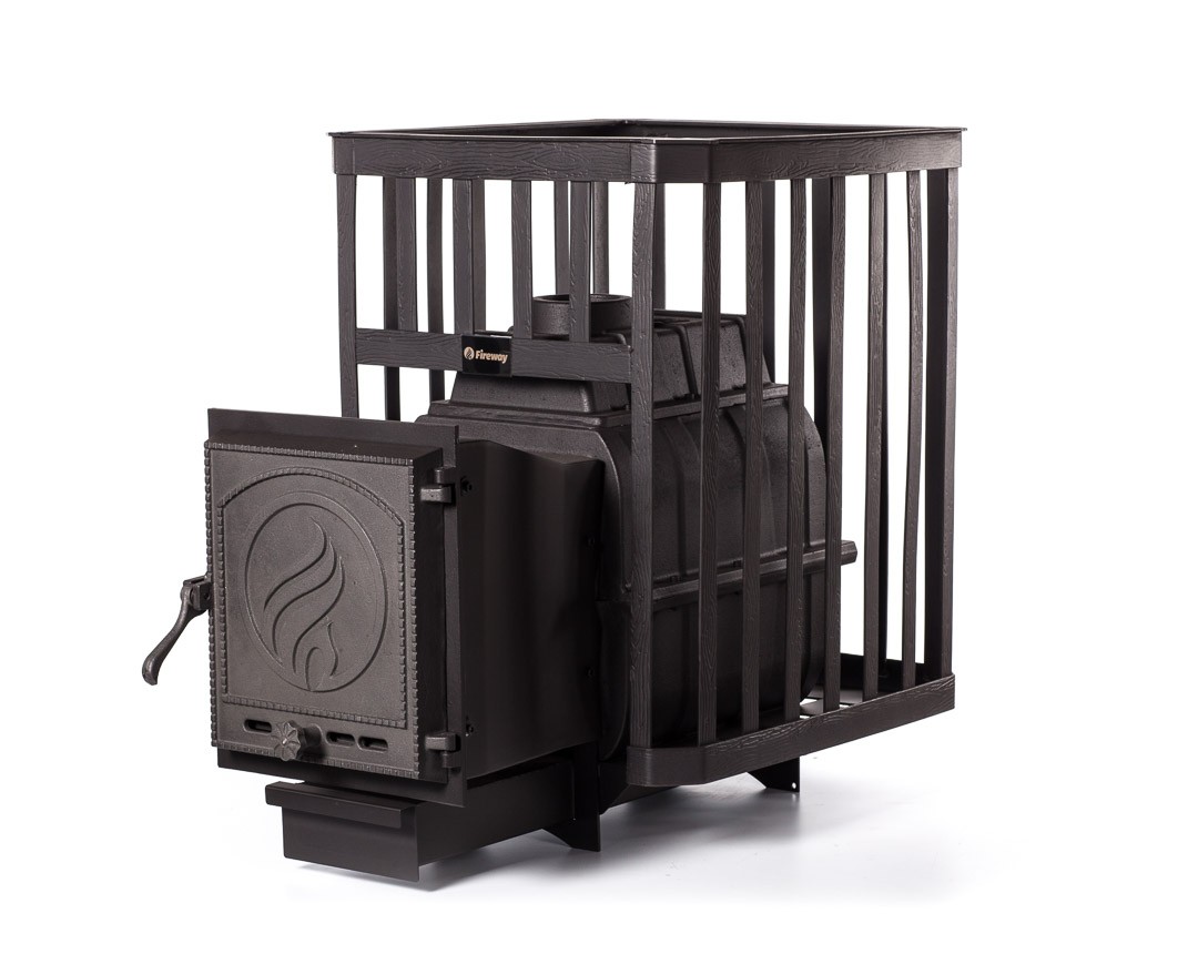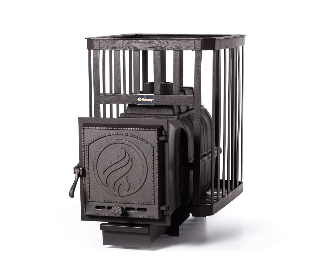 Банная печь FireWay ПароВар 18 Ковка (К414) с выносом топки, чугун, открытая каменка, для парной 10-18 м3, масса камней 120 кг, вес печи 90 кг