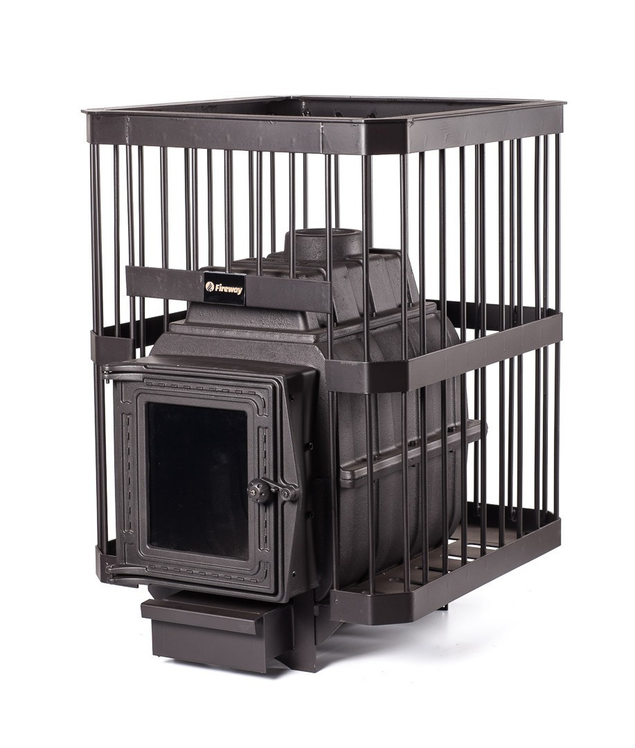 Банная печь FireWay ПароВар 18 Прут (201) без выноса топки, чугун, открытая каменка, для парной 10-18 м3, масса камней 120 кг, вес печи 78 кг