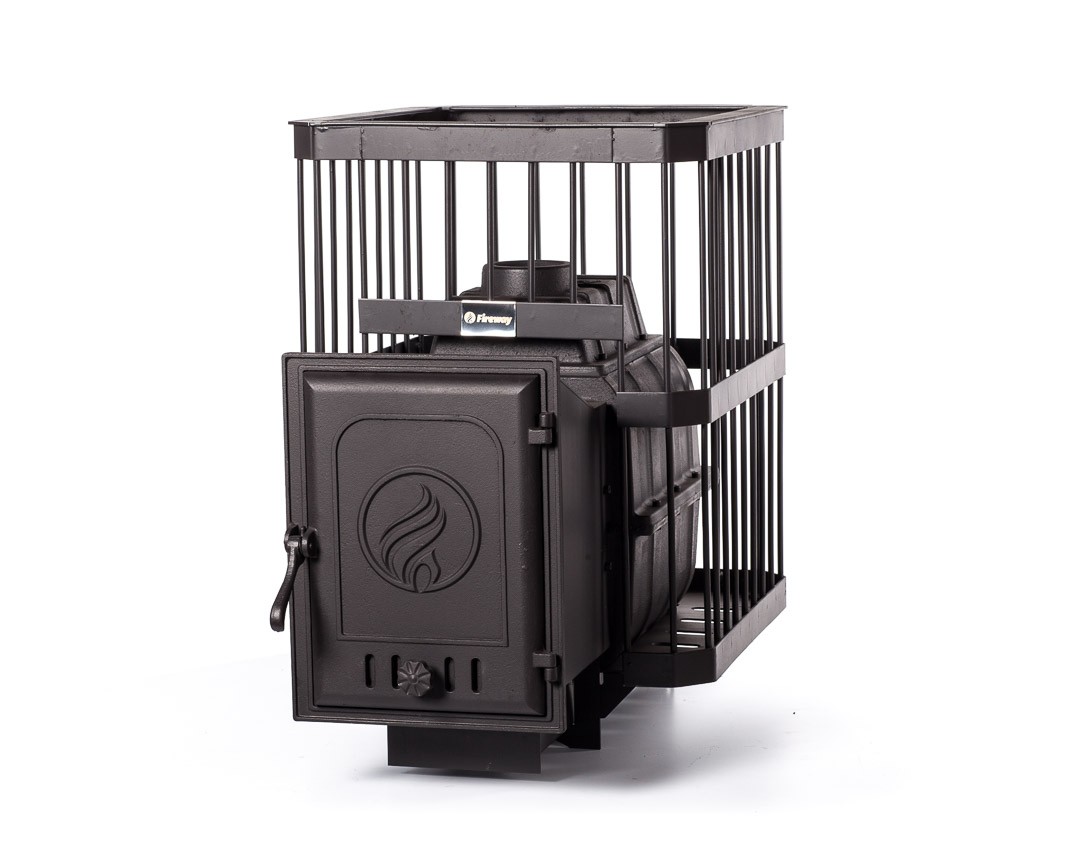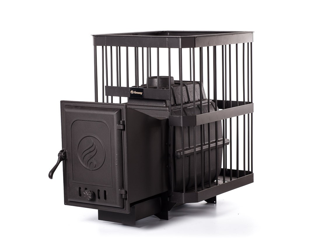 Банная печь FireWay ПароВар 18 Прут (413), выносная топка, чугун, открытая каменка, для парной 10-18 м3, масса камней 120 кг, вес печи 78 кг