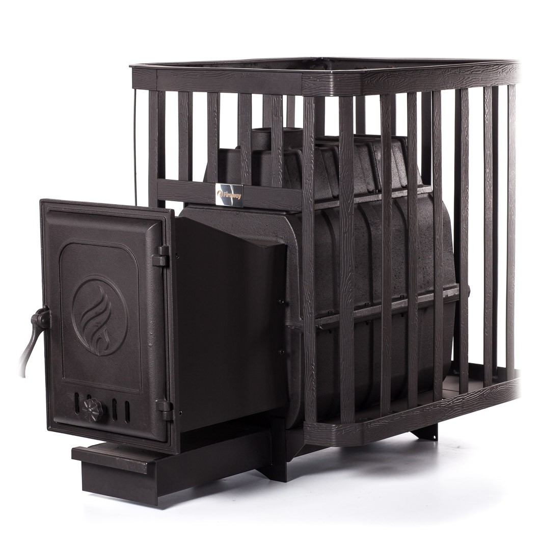 Банная печь FireWay ПароВар 24 Ковка (413), чугун, открытая каменка, выносная топка, для парной 14-24 м3, масса камней 180 кг, вес печи 108 кг