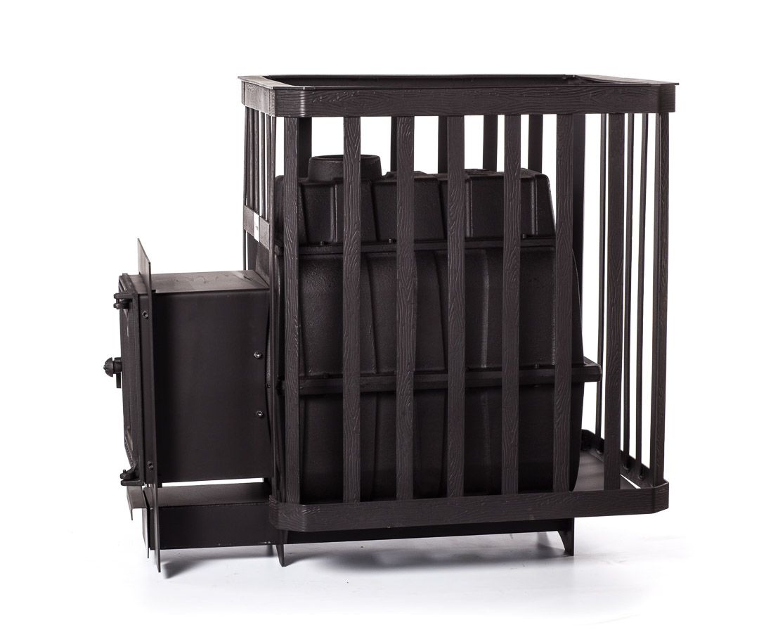 Банная печь FireWay ПароВар 24 Ковка (К201), выносная топка, чугун, открытая каменка, для парной 14-24 м3, масса камней 180 кг