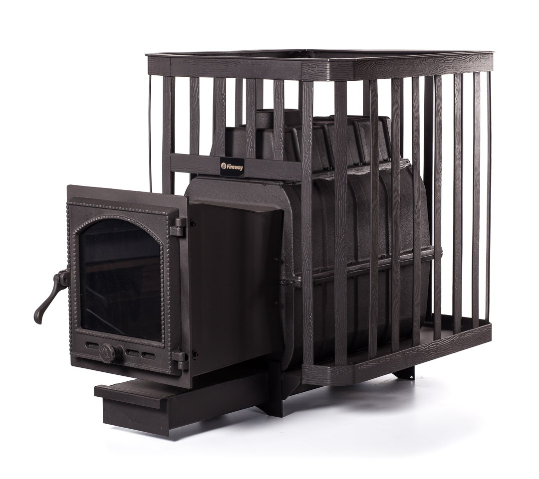 Банная печь FireWay ПароВар 24 Ковка (К404), выносная топка, чугун, открытая каменка, для парной 14-24 м3, масса камней 180 кг, вес печи 116 кг