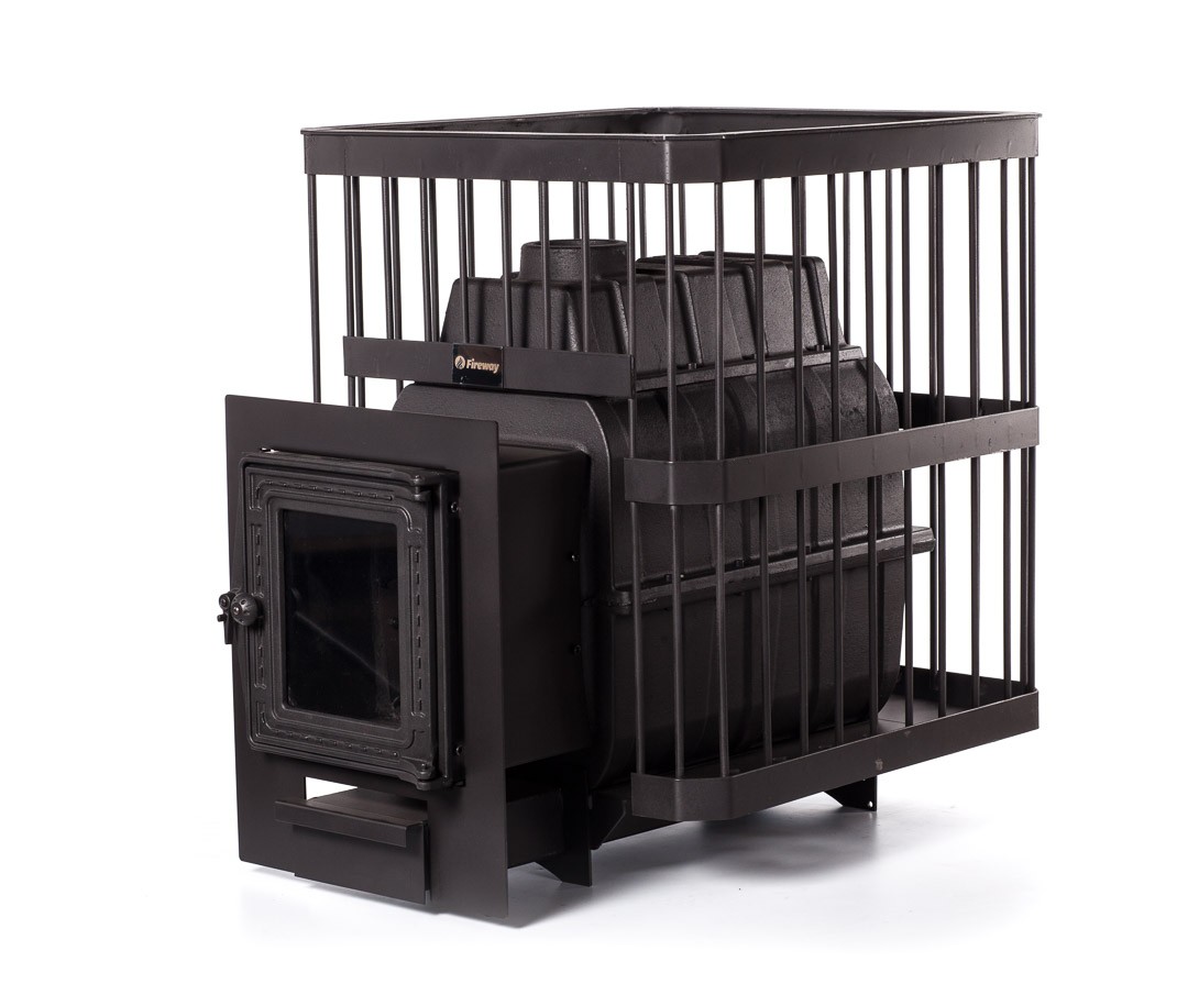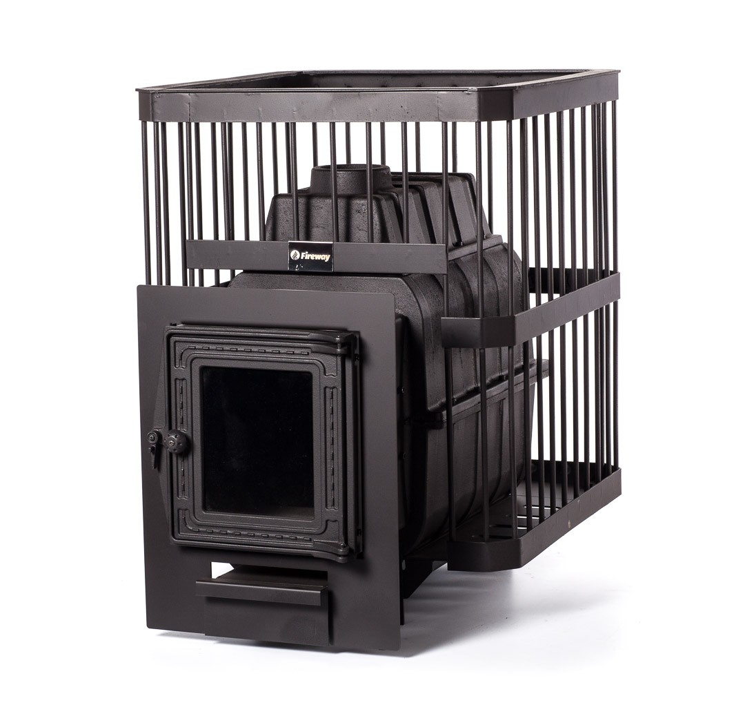 Банная печь FireWay ПароВар 24 Прут (201), выносная топка, чугун, открытая каменка, для парной 14-24 м3, масса камней 180 кг, вес печи 97 кг