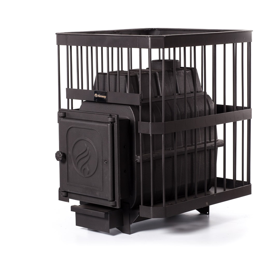 Банная печь FireWay ПароВар 24 Прут (312) без выноса топки, чугун, открытая каменка, для парной 14-24 м3, масса камней 180 кг, вес печи 97 кг