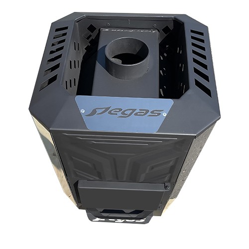 Печи Пегас просты в эксплуатации, топка выполнена без выноса предполагает протопку прямо из парного помещения, на боковых скосах топки установлены сменные защитные пластины, они так же способствуют проходу воздуха от колосниковой решётки в среднюю часть камеры сгорания. Толщина стали 3 мм, корпус печи сформирован с интегрированными ребрами жёсткости, без применения сварки, что значительно снижает нагрузку на строение металла, тем самым увеличивает срок службы печи. Масса закладываемых камней 30-40 кг, такое количество камня способствует быстрому прогреву помещения и позволяет быстро получить большой объем лёгкого пара.