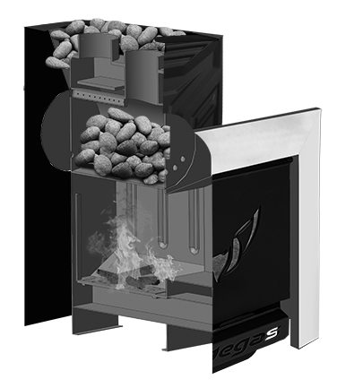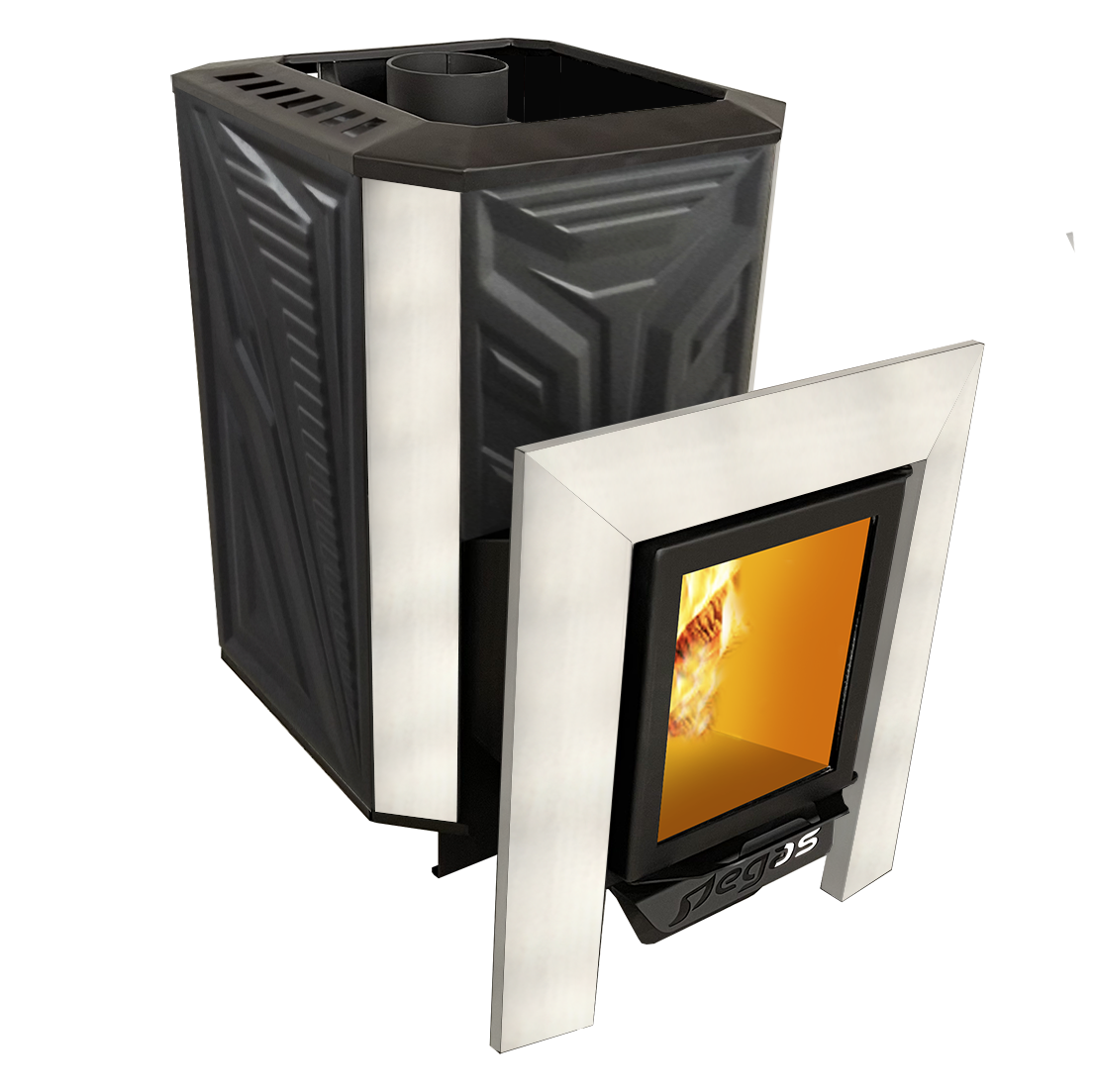 Печь оснащена закрытой каменкой из жаропрочной нержавеющей стали - это лучшие металлические печи для русской бани, в них каменка располагается внутри конструкции и таким образом, обеспечивается максимальный нагрев камней и длительное сохранение тепла, современный дизайн печей, закрытая каменка относится к невентилируемым системам, за счет этого создается равномерная температура без перегрева с поддержанием комфортного режима длительный период времени, пар мелкодисперсный, мягкий, с легкой структурой, наиболее нагруженные элементы печи изготовлены из 8 мм стали, корпус печи сформирован с интегрированными ребрами жёсткости, без применения сварки, что значительно снижает нагрузку на строение металла, тем самым увеличивает срок службы печи. Печь оснащена выносным топливным каналом, позволяющим топить его из смежного помещения, топка большой ёмкости, позволяет загрузить большое количество дров, чугунная колосниковая решетка, выдвижной зольный ящик, дополнительные отверстия для притока воздуха, позволяют произвести нужную регулировку горения, приёмная чаша-дозатор для подачи воды в закрытую каменку.