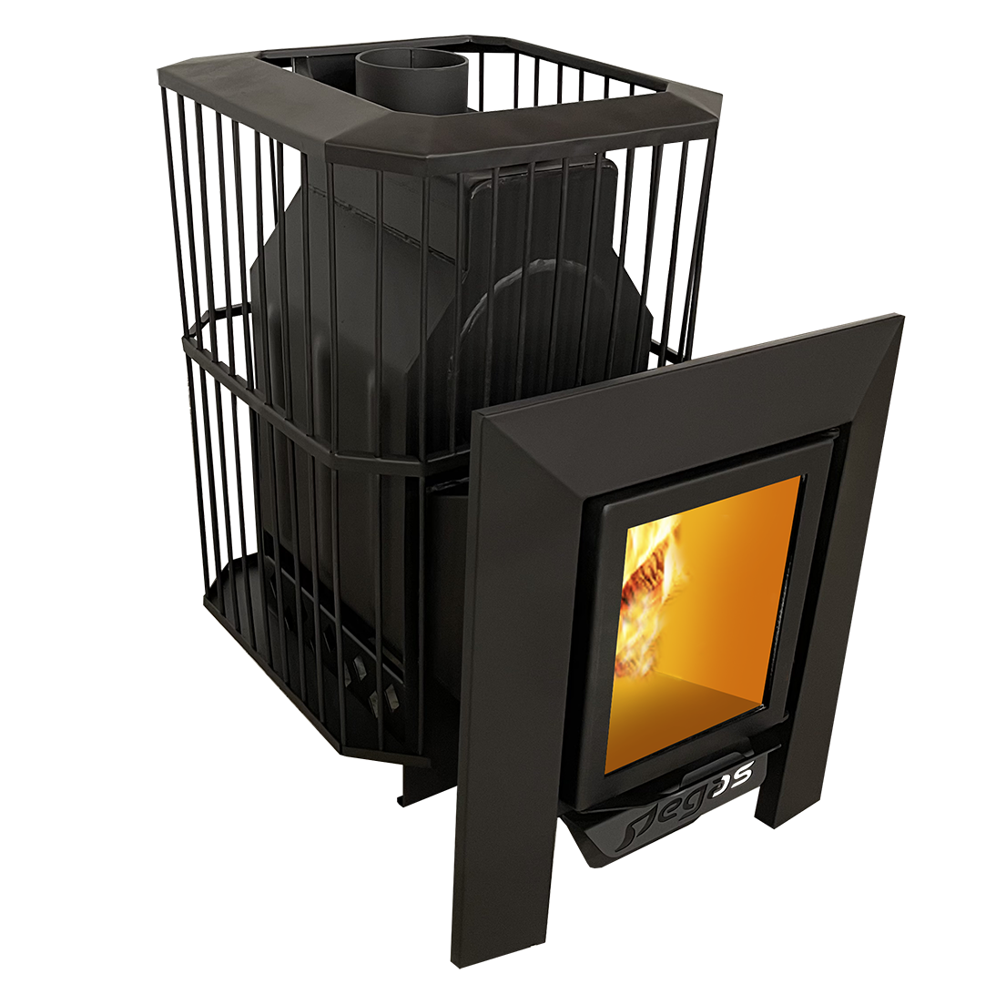 Банная печь Пегас 16 со стеклом сетка для парной 6-16 м3, масса камней 80-100 кг, с выносом