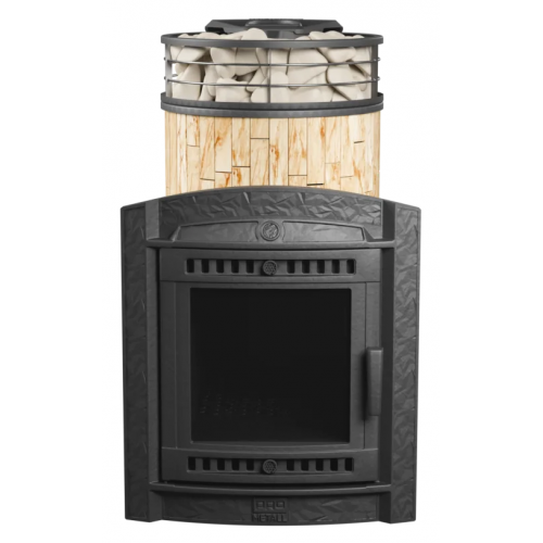 Банная печь ProMetall Атмосфера L Окаменевшее дерево ламель+сетка, дровяная, объём парной: 12-20 м³, объем топки: 54 л, каменка: открытая/закрытая, материал: чугун хромистый