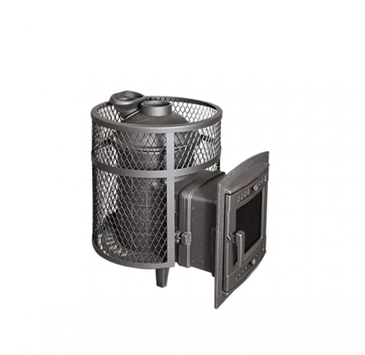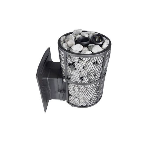 Печь Атмосфера - Модель с увеличенной каменкой и повышенной производительностью. Кожух печи изготовлен в виде сетки из стали и полностью заполняется природными камнями, обеспечивая высокую динамику нагрева парильного помещения.