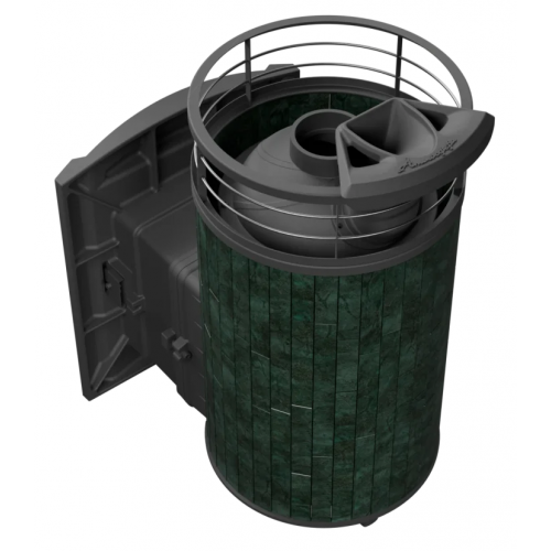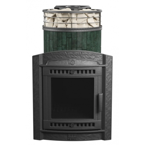 Практичная и компактная модель. Ламели из змеевика по периметру внешней каменки не только обладают хорошими теплонакопительными свойствами, но и придают печи оригинальный внешний вид.