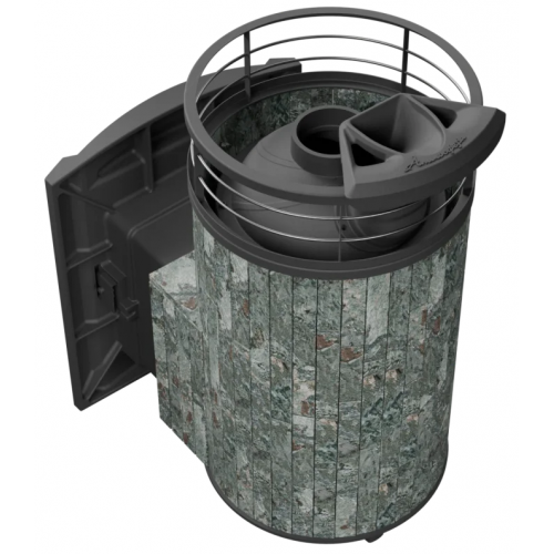 Практичная и компактная модель. Ламели из змеевика по периметру внешней каменки не только обладают хорошими теплонакопительными свойствами, но и придают печи оригинальный внешний вид.