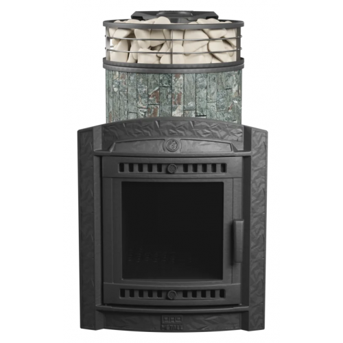 Банная печь ProMetall Атмосфера L Жадеит ламель+сетка, дровяная, объём парной: 12-20 м³, объем топки: 54 л, каменка: открытая/закрытая, материал: чугун хромистый