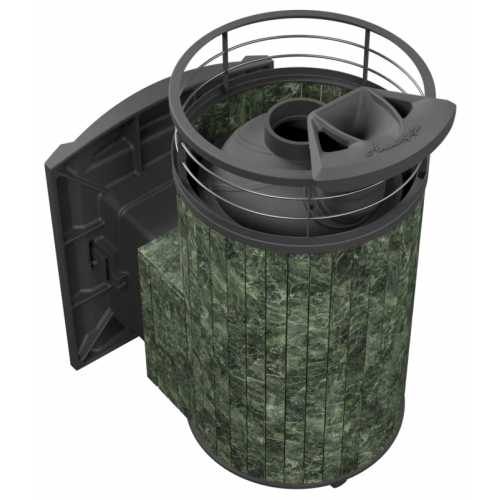 Практичная и компактная модель. Ламели из змеевика по периметру внешней каменки не только обладают хорошими теплонакопительными свойствами, но и придают печи оригинальный внешний вид.