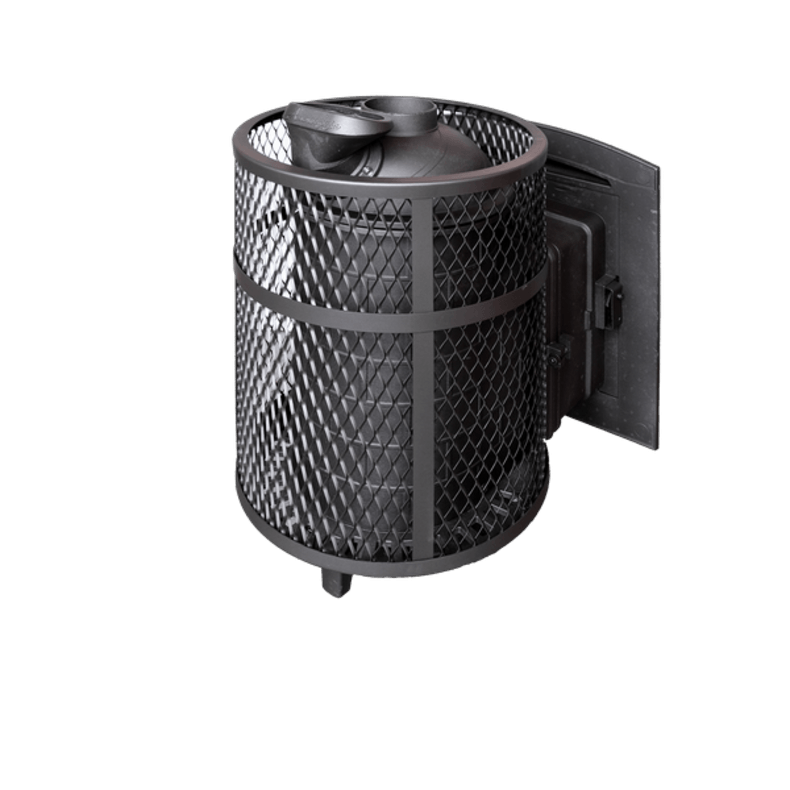 Ультра компактная модель банной печи. Кожух печи изготовлен в виде сетки из нержавеющей стали и полностью заполняется природными камнями, обеспечивая высокую динамику нагрева парильного помещения. Маленькая, но не менее надёжная банная печь для небольших парных помещений, объёмом до 14 м³. Отлично подойдёт для небольших частных парных и будет служить долгие годы своему хозяину.