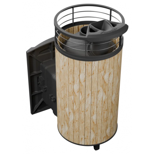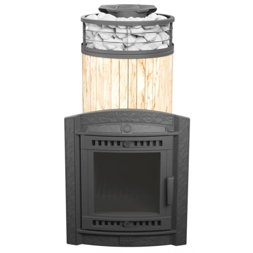 Модель с увеличенной каменкой и повышенной производительностью. Ламели из змеевика по периметру внешней каменки не только обладают хорошими теплонакопительными свойствами, но и придают печи оригинальный внешний вид.