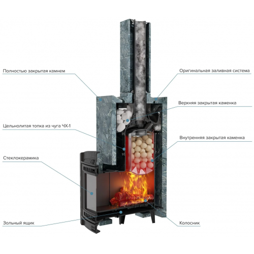 | Материал закрытой каменки | Нержавеющая сталь (AISI 439) |