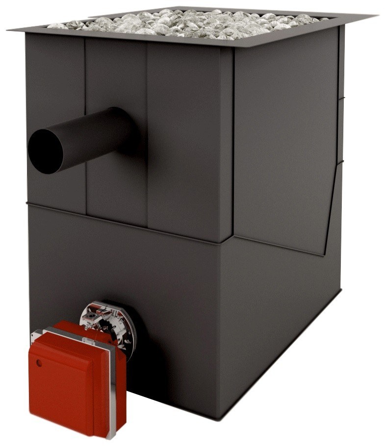 Печь для бани газовая «КомПАР» для коммерческого применения – печь-каменка для установки в парильных помещениях объемом от 40 до 70 кубометров. Топка печи изготовлена из жаростойкой нержавеющей стали с повышенным содержанием хрома (не менее 18%) и титана. Толщина металла топки составляет 4 мм, а в наиболее термически и механически нагруженных зонах — 6 мм. Печь предназначена для установки вентиляторных газовых горелок одно- или двухступенчатого режима работы мощностью до 100 кВт (в комплект не входит). Рекомендуемые к установке типы горелок: Riello BS1, Weishaupt WG5, Ferroli Sun M6, Lamborghini EM 6-E.D1.