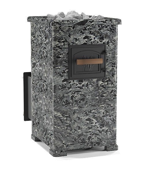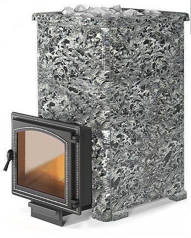 В комплект также входит облицовка из пироксенита, толщиной 40 мм. Облицовка из натурального камня смотрится оригинально и способна существенно преобразить интерьер вашей бани. Но помимо декоративной функции, пироксенит аккумулирует тепло, способствует более равномерному его распределению в парной, и благодаря данному натуральному камню температура в парной долго не падает. Облицовка из натурального камня также отличается долговечностью, она прослужит вам долгие годы. Еще один плюс данной облицовки – простота ухода. Достаточно просто протереть её губкой. Пироксенит – экологически чистый материал, он не выделяет вредных веществ при нагревании, полностью безопасен для здоровья. В данном комплекте пар можно получить двумя способами: можно поддавать воду в закрытую каменку печи через специальную лейку, либо поддать воду на камни через дверцу, которая идет в комплекте. В комплект также входит короб, который предотвращает повреждения облицовки от камней и улучшает конвекцию. Из-за высокой мощности печи и сильного нагрева рекомендован чугунный шибер.