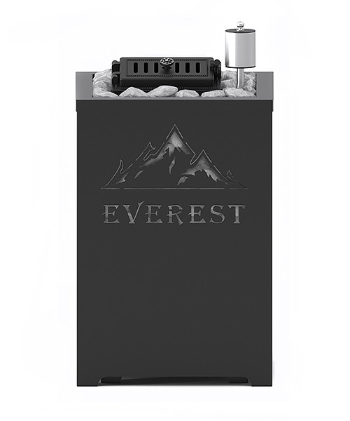 Конвекционный кожух для печей Эверест INOX заменяет каменную или кирпичную обкладку печи INOX и позволяет сократить время на оборудование парной. Кожух обеспечивает хорошую конвекцию в парной и быстрый прогрев помещения. Стенки кожуха выполнены с прорезным щелевым узором в виде цепи горных вершин. Прорезы расположены в верхней части кожуха. Такое размещение узора «Горы» обеспечивает усиление конвекции по сравнению со сплошными стенками, сочетающееся со значительным нагревом воздушного потока. Кожух состоит из четырёх стенок и верхнего обода. Стенки собираются на винтах и устанавливаются по периметру печи. Квадратный обод сверху закрывает кожух и придаёт изделию законченный внешний вид. Кожух изготовлен из конструкционной стали толщиной 3 мм, легко выдерживает термические и механические нагрузки. Он защищает печь от внешних воздействий и делает эксплуатацию печи более безопасной. Печи Эверест INOX в модификации с кожухом обеспечивают активное движение воздуха и быстрый прогрев помещения парной. Щель между кожухом и стенкой печи является хорошим конвектором. Кожух в сборе чуть выше самой печи, что позволяет организовать на верхней части печи дополнительную открытую каменку (вмещает от 15 до 25 кг камней, в зависимости от фракции камня), на которую во время парения можно поддавать воду для получения высокой влажности в парной.
