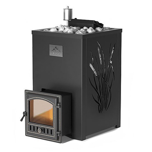 Конвекционный кожух для печей Эверест INOX заменяет каменную или кирпичную обкладку печи INOX и позволяет сократить время на оборудование парной. Кожух обеспечивает хорошую конвекцию в парной и быстрый прогрев помещения. Стенки кожуха выполнены с прорезным щелевым узором в виде цепи горных вершин. Прорезы расположены в верхней части кожуха. Такое размещение узора «Камыш» обеспечивает усиление конвекции по сравнению со сплошными стенками, сочетающееся со значительным нагревом воздушного потока. Кожух состоит из четырёх стенок и верхнего обода. Стенки собираются на винтах и устанавливаются по периметру печи. Квадратный обод сверху закрывает кожух и придаёт изделию законченный внешний вид. Кожух изготовлен из конструкционной стали толщиной 3 мм, легко выдерживает термические и механические нагрузки. Он защищает печь от внешних воздействий и делает эксплуатацию печи более безопасной. Печи Эверест INOX в модификации с кожухом обеспечивают активное движение воздуха и быстрый прогрев помещения парной. Щель между кожухом и стенкой печи является хорошим конвектором. Кожух в сборе чуть выше самой печи, что позволяет организовать на верхней части печи дополнительную открытую каменку (вмещает от 15 до 25 кг камней, в зависимости от фракции камня), на которую во время парения можно поддавать воду для получения высокой влажности в парной.