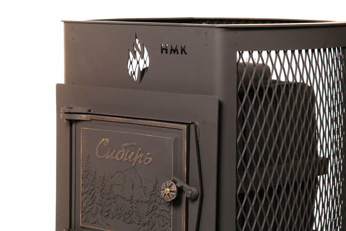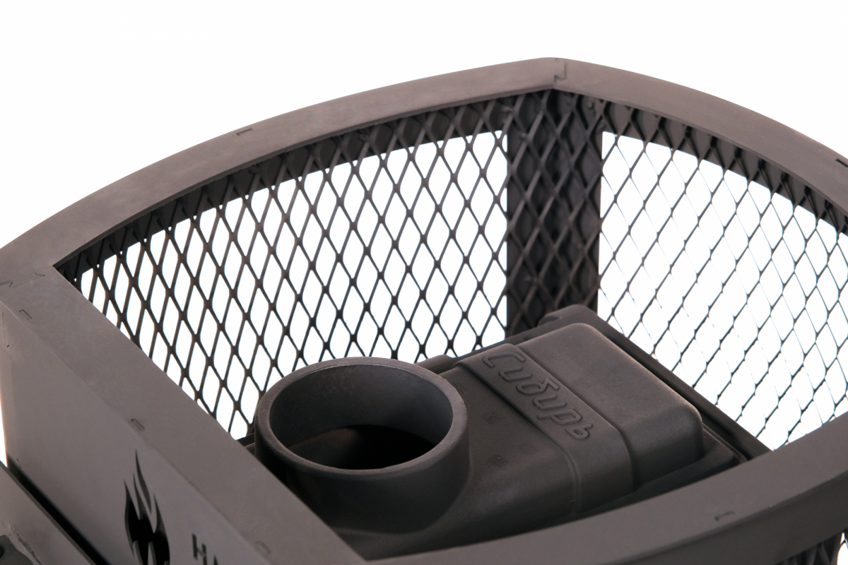 Печь банная чугунная Сибирь-15 Чугунная дверца без ВТК (Сетка), материал: чугун, каменка: открытая, мощность: 15 кВт, объем парной: 8-15 м³, дымоход: 115 мм