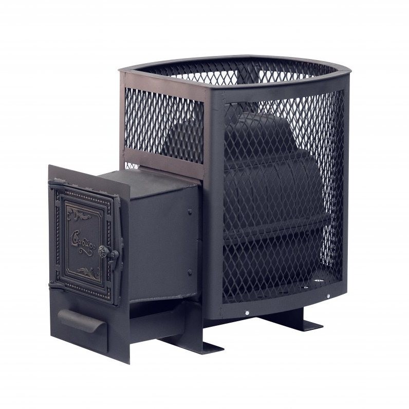 Печь банная чугунная Сибирь-24 Универсальная чугунная дверца (Сетка), материал: чугун, каменка: открытая, мощность: 24 кВт, объем парной: 12-24 м³, дымоход: 115 мм, выносная топка