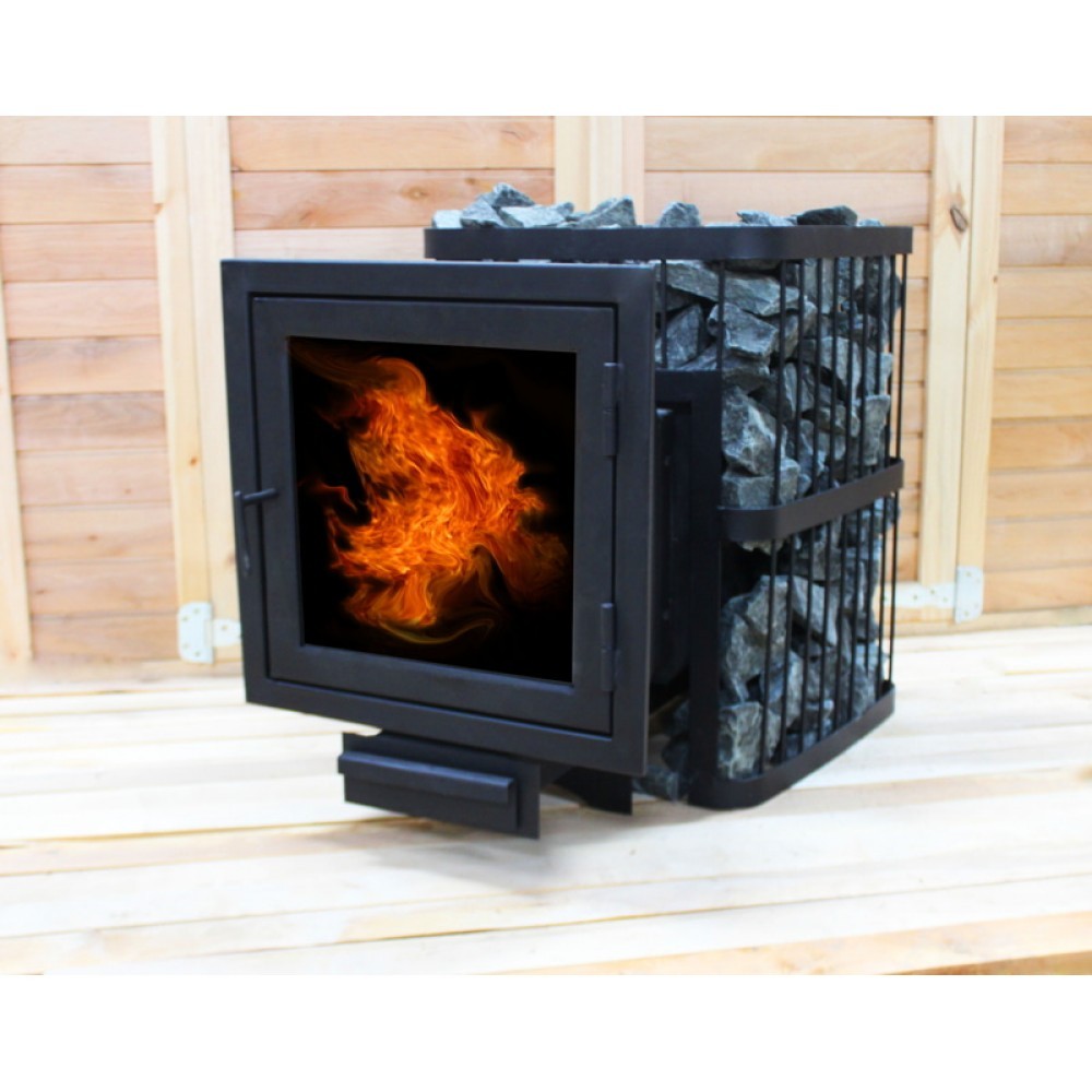 Печь для бани ComfortProm РЕТРО ПРЕМИУМ ЧУГУН для парной до 26 м3 с панорамным стеклом, открытая каменка.