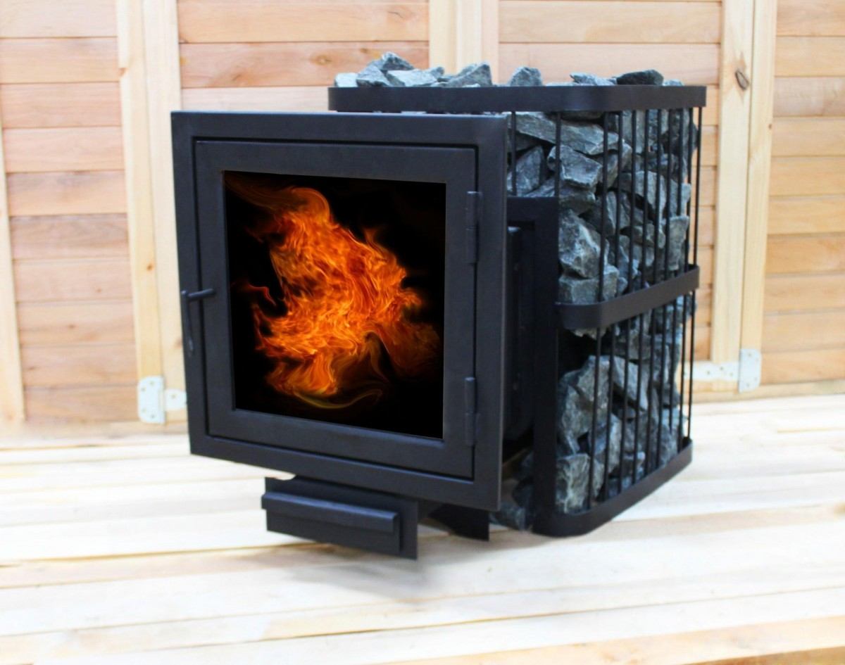 Печь банная ComfortProm РЕТРО СТАЛЬ 8 мм панорама для парной до 20 м3, с панорамным стеклом, открытая каменка.