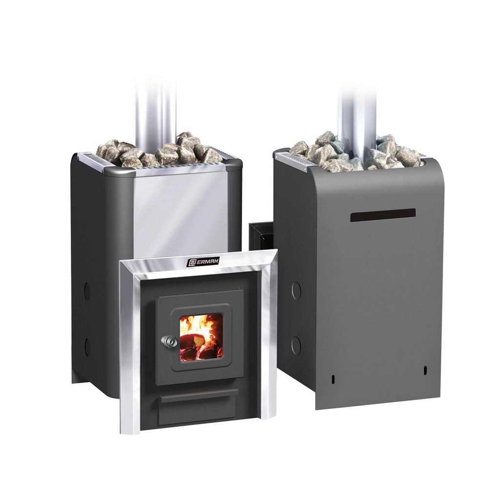 Дровяная печь для бани Ермак-Элит 16-C, мощность 16 кВт, материал топки нержавеющая сталь (3 мм), емкость каменки 50-60 кг, объем помещения 8-16 м3