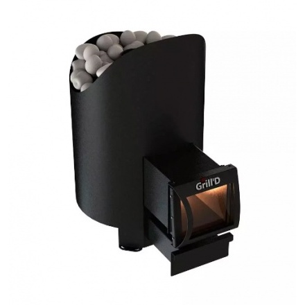 Печь банная Grill'D Aurora 160 Long, объем парной 6-16 м3, каменка открытая, вес камней 40 кг, топка выносная